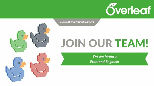 Frontend Engineer (remote, full-time) ▶️ We are looking to hire a frontend engineer to help improve our platform. Come work with us, we are a friendly bunch! https://www.overleaf.com/about/careers/frontend-engineer #Overleaf #OverleafJobs