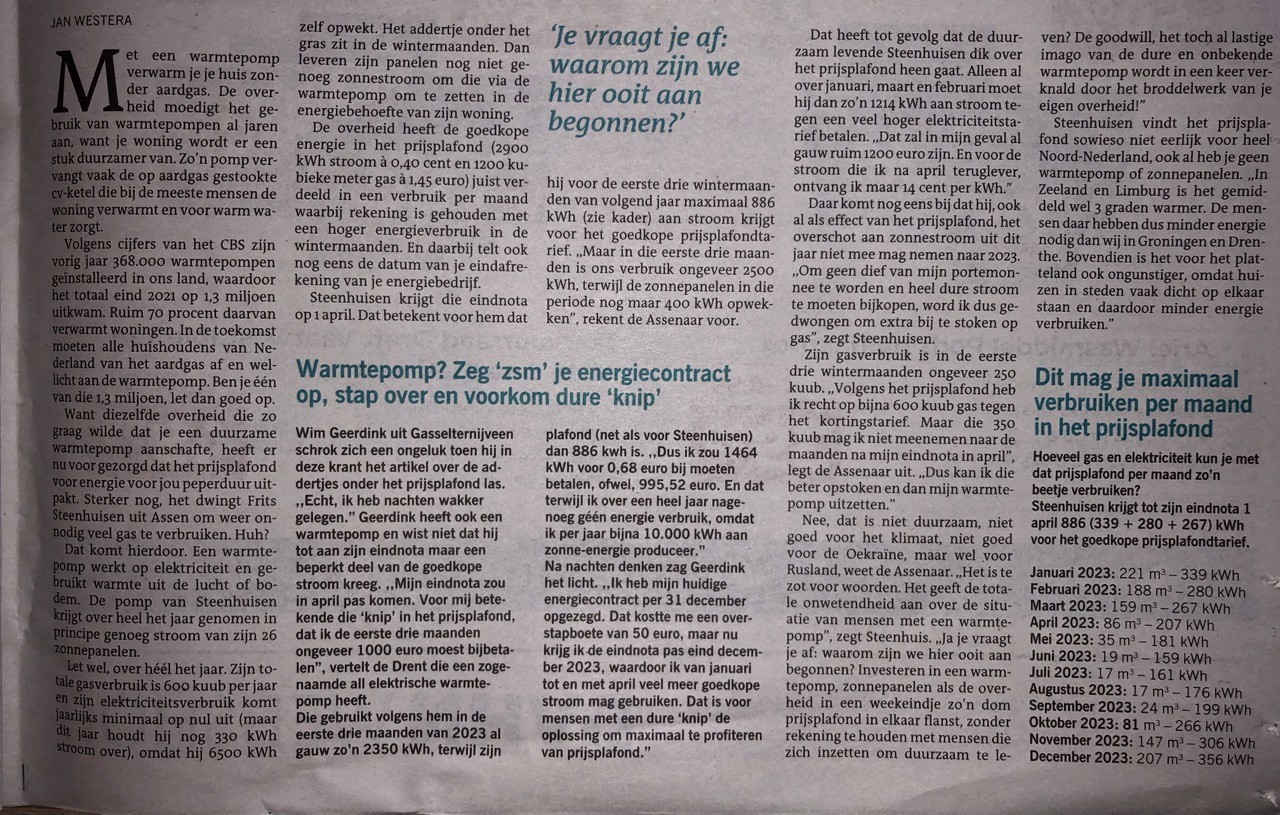 Artikel in DvhN 28-12-2022 met titel “Warmtepomp peperduur door prijsplafond”. Mèt goede overstap tip!