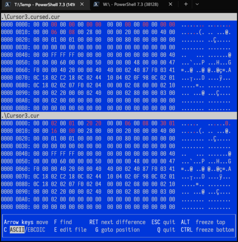 So I had to sit with binary diff for a while (VBinDiff rocks!), and finally manually parse/emit a couple of simple data structures the .cur file (and the similar resource format) consists of.