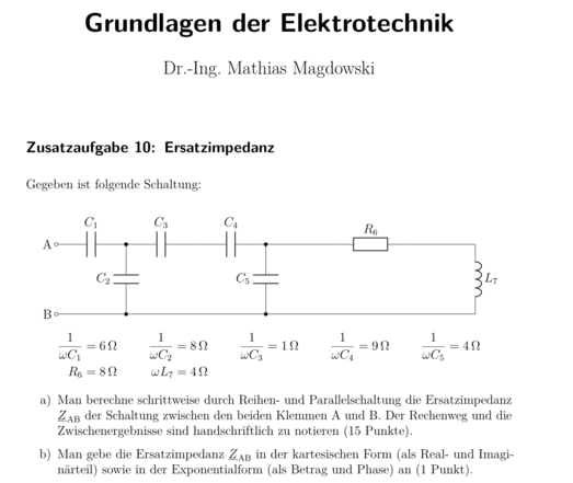 Heute bekommen unsere Studierenden an der #OVGU Magdeburg die nächste Runde #PersonalisierteAufgaben in den #GrundlagenDerElektrotechnik, in denen es um die Berechnung der Ersatzimpedanz einer einfachen Schaltung geht.