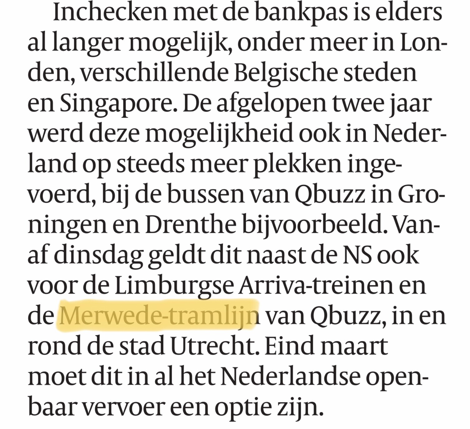 Interessante observatie van @volkskrant dat #OVpay al te gebruiken zou zijn op de #Merwedelijn in Utrecht.