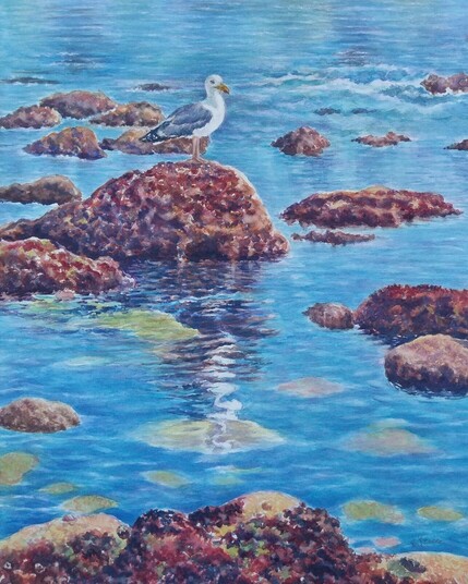 Inspiration for my painting comes from wonderful visits to #PacificGrove. One of my favorite places in #California. Fine art prints available. #art #artwork #artist #MastoArt #AYearForArt #meermittwoch #kunst #WildlifeWednesday #monterey #travel #watercolor #watercolour #painting #ocean #sea #nature #birds