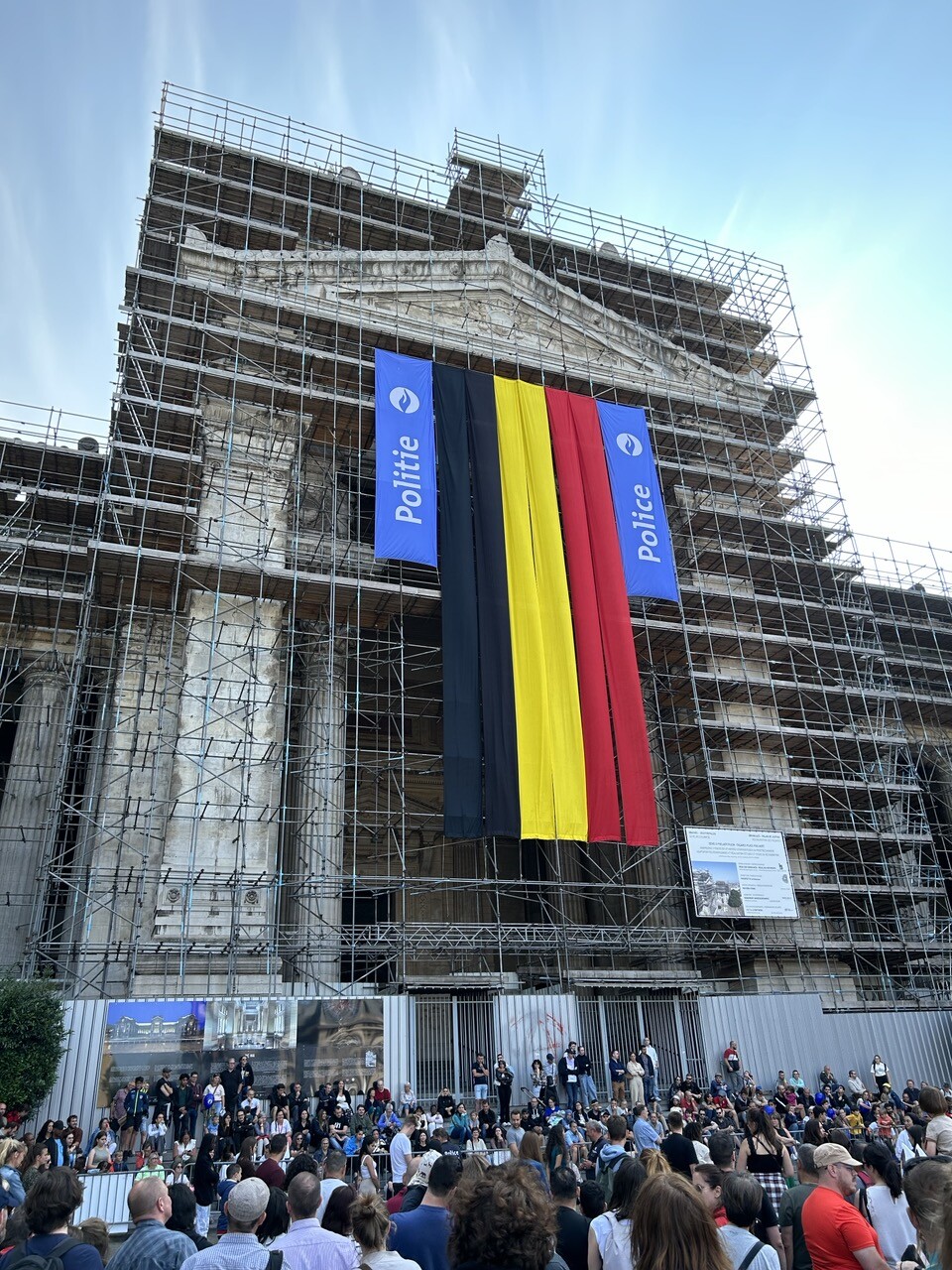 La Belgique, ce pays où la police peut dérouler ses affiches géantes sur le principal siège du pouvoir judiciaire sans que ça choque personne 😅 #PalaisDeJustice #OnlyInBelgium