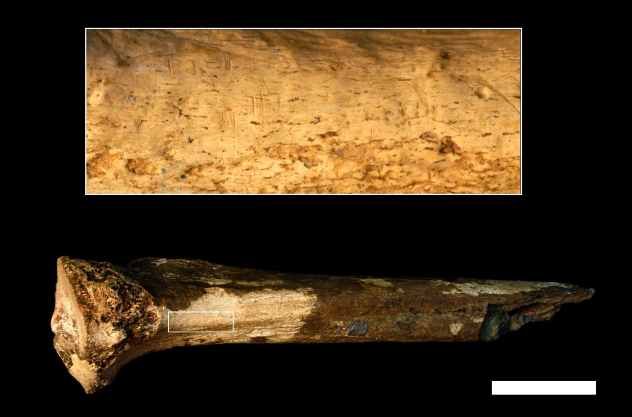 AAAS: "Did our ancient relatives practice cannibalism?" About 1.5 million yrs ago, an ancient evolutionary ancestor may have feasted on tissue at least from another Hominidae [modern humans and our close extinct relatives, such as Ardipithecus and Australopithecus], if not a member of their own species. "On the fossil of a shin bone housed at the Nairobi National Museum, researchers have discovered nine previously unidentified incisions made by a stone tool." These cuts were clustered around where the calf muscle [deep muscle = soleus, more superficial muscles = gastrocnemius, skinny muscle in back of calf = plantaris] would be attached, in this case almost certainly the soleus. "This may be the oldest example of butchery, and possibly cannibalism, among our evolutionary relatives, according to a study published today in Scientific Reports." Little too old for an episode of CSI. Also clearly not vegetarians. #paleoanthropology #paleoarcheology