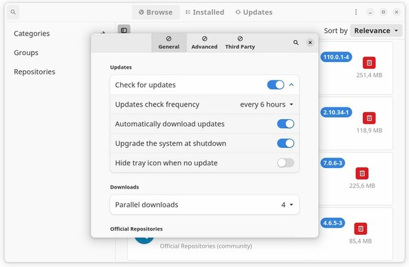 With #pamac you're now also able to #update on #shutdown. Visit our #blog to find out more: https://blog.manjaro.org/pamac-package-manager-with-latest-improvements/