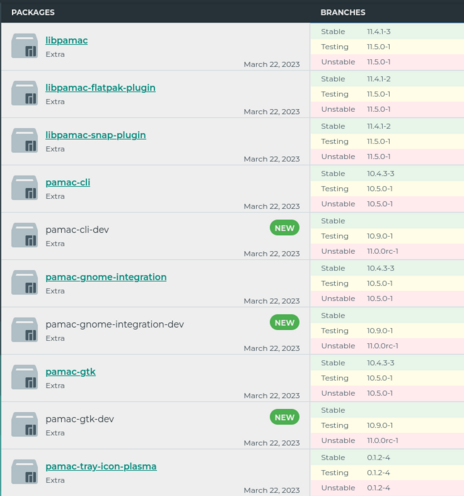 #Pamac 11.0.0-RC1 just got pushed to our #unstable branches of @manjarolinux and @ManjaroLinuxARM. See what it will offer: https://gitlab.manjaro.org/applications/pamac/-/tags/11.0.0rc