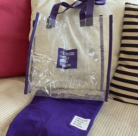 Iβm grateful to pancan.org for the work they do to increase survival for individuals with #PancreasCancer. Donate, & shop at the online store! Here, hoodie, reusable shopping bags, purple beads, wristbands, tee! #StockingStuffers