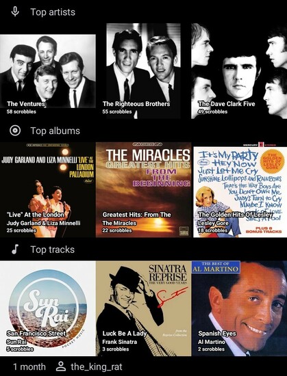 A lot of 60s music. I like the Ventures. The rest are mostly there because I'm listening through the charts and they had a lot on the charts.