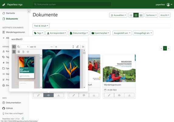 Word-Dokumente werden auch anstandslos in Paperless-ngx verarbeitet. Man erhält 2 Versionen: