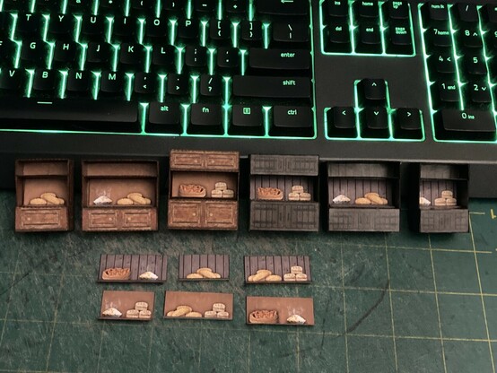 Crafting, crafting, crafting. It was really a day of being in my happy place. I've got an outdoor adventure camp prop set coming along - I've assembled SO MANY pieces and I still love them all, so that's a good sign! These here were just some test builds. I'm hoping to snap some fun action shots in a day or two! #ttrpg #papercraft #paperterrain #paperrealms