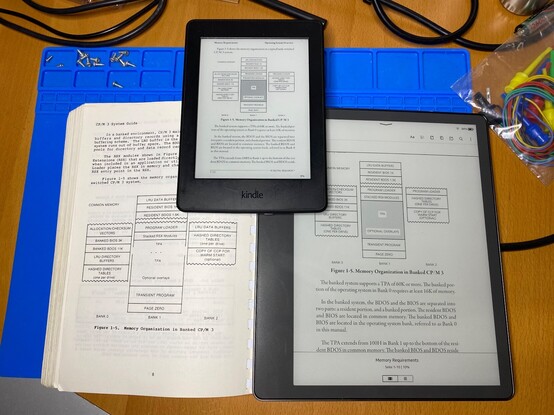 Comparison of #kindle display sized. #paperwhite vs #scribe. Dead tree manual for scale
