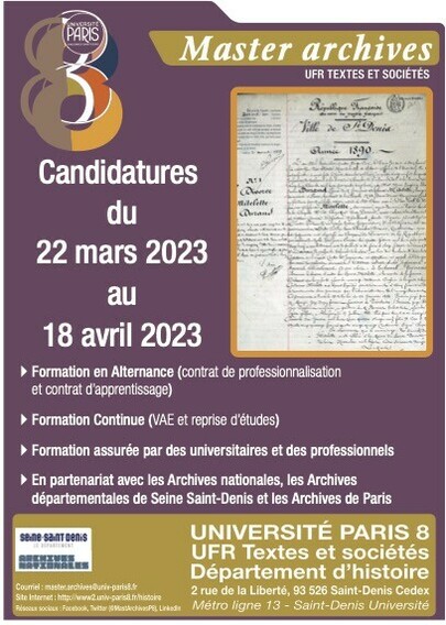 Rappel : samedi 21 janvier, venez découvrir le master Archives à la JPO de #Paris8!