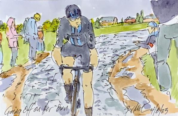 “Off on Her Own” @daniekh20 @TeamDSM jumps away from the break away in @RoubaixFemmes w/ 71 K to go! More #parisroubaixfemmes #cycling #art #watercolors at theartofcycling.blogspot.com @NBCSCycling @spannawalker @antmccrossan #cyclisme #ciclismo #wielrennen