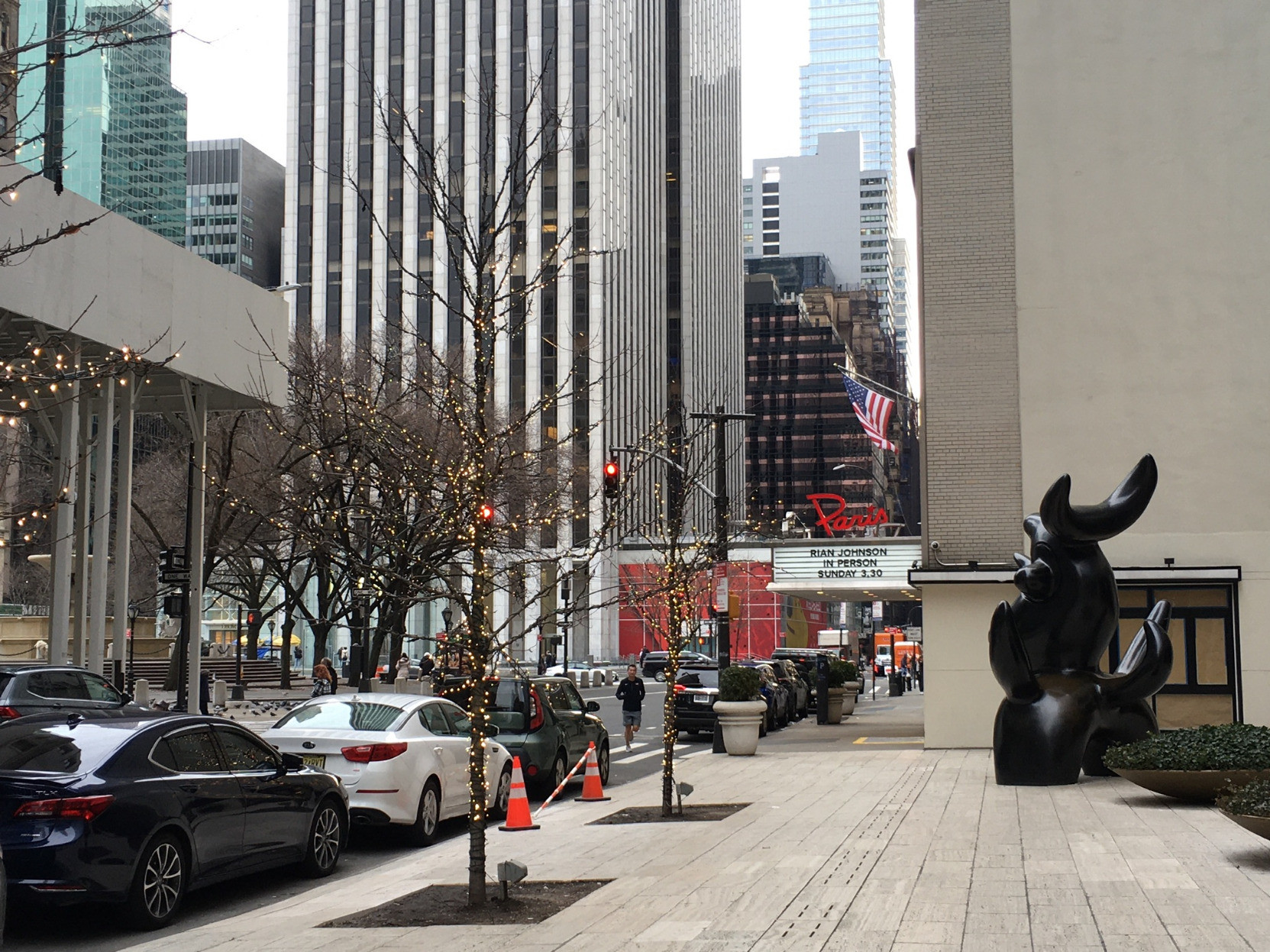 I have lived in NYC for 15 years, and I am still amazed by all its details. This photo—one I took on my way to French Institute Alliance Française—is filled with details: trees outlined with lights (it looks gorgeous at night), the Paris Theater marquee (it is the oldest arthouse theater in NYC), the Joan Miró sculpture at the Solow Building, the Pulitzer Fountain on the left…there’s always something interesting to look at in this city.