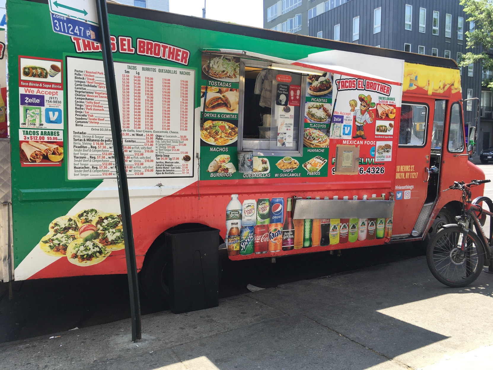 This is how we do Taco Tuesday in Brooklyn. We walk a block to the nearest authentic Mexican food truck and order tacos—in this case, pastor tacos from Tacos El Brother (http://ordertacoselbrothertruck.com).