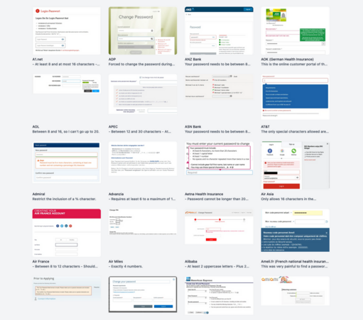 A website dedicated to example of wacky, poorly designed password rules that sometimes make little sense: https://dumbpasswordrules.com/sites/