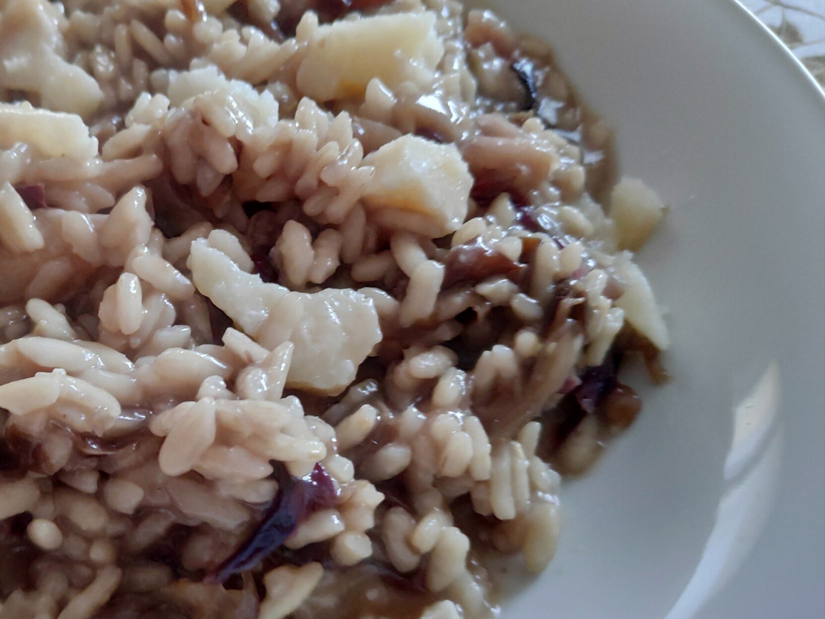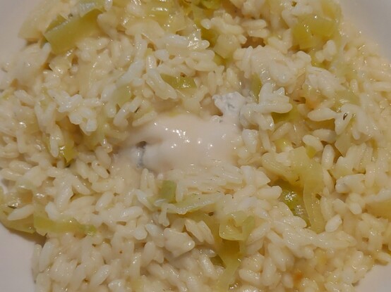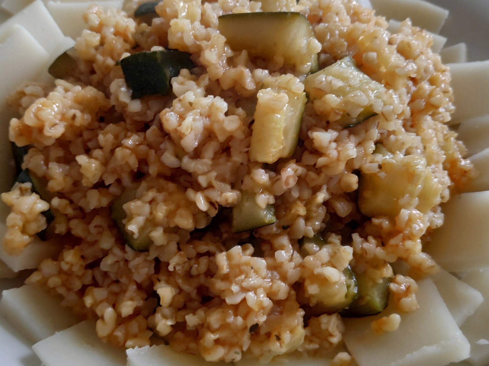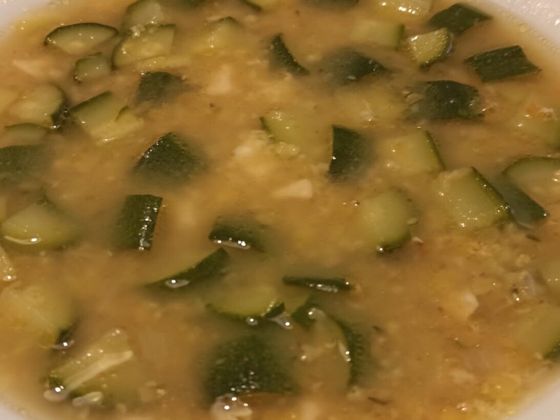 con lenticchie rosse, scalogno, zucchine, scaglie di parmigiano e un filo di olio evo