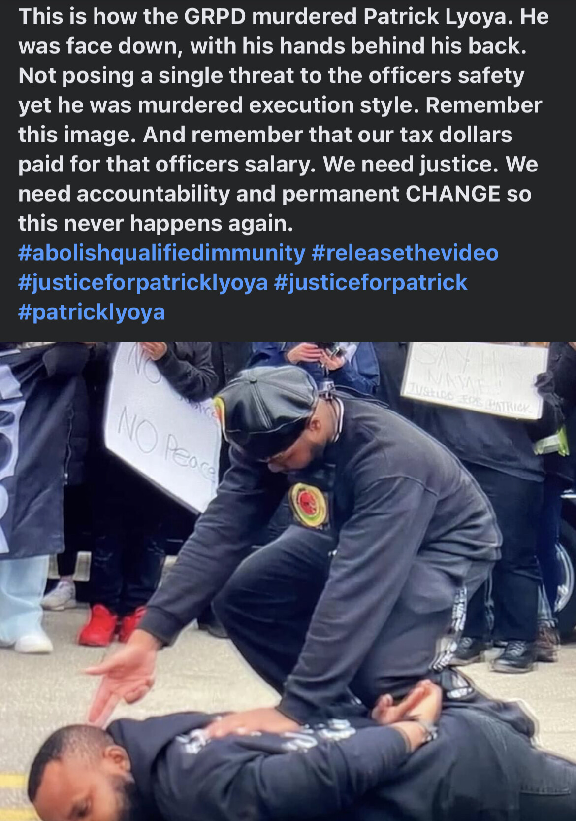 #JusticeForPatrickLyoya, who was killed by a #GrandRapids 🐖 police officer early this week....