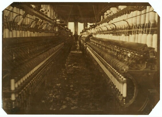 For Child Welfare Exhibit 1912-13.) View in a #Pawtucket, #R.I., cotton mill showing accumulation of lint on floor. The air is full of it too, but photo doesn't show it. Location: #Pawtucket, #RhodeIsland.