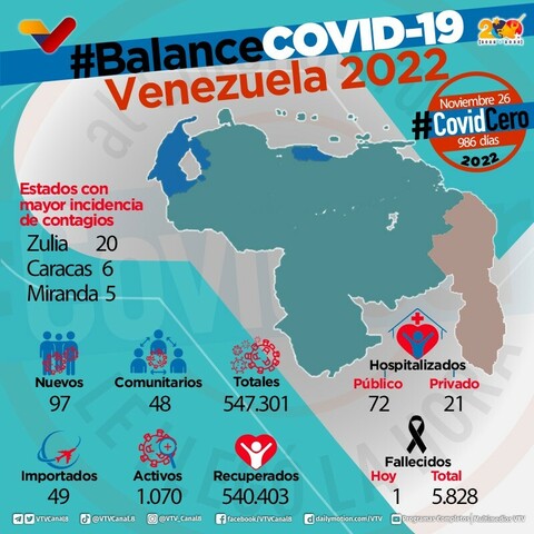Día 986 | Lucha contra la COVID-19: Venezuela registra 97 nuevos contagios en las últimas 24 horas