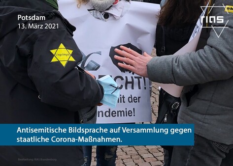 Meldung #Potsdam-#Brandenburg, 13.03.2021: Antisemitische Bildsprache auf Versammlung gegen staatliche #Corona-Maßnahmen.