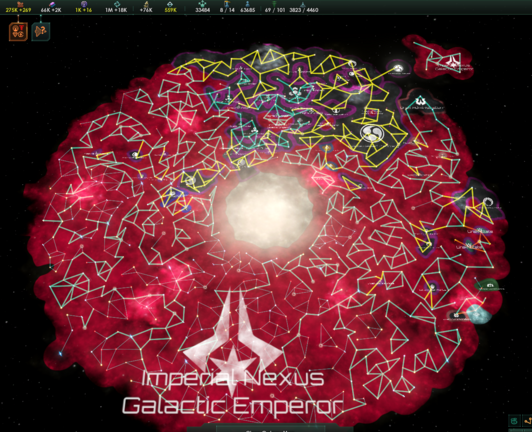I've conquered the vast majority of the galaxy, with 560 worlds, ~63b population. As the Imperial Nexus, I've beaten the Khan, 2 awakened fallen empires, and 3 crises events. Currently awaiting the victory screen in about 33 years.