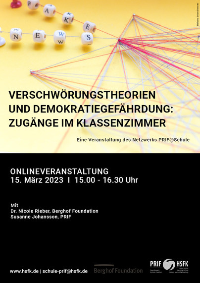 Our #PeaceEducation expert Nicole Rieber is going to hold an online presentation at @HSFK_PRIF about #ConspiracyTheories, their threat to democracy and how to approach this topic in schools.