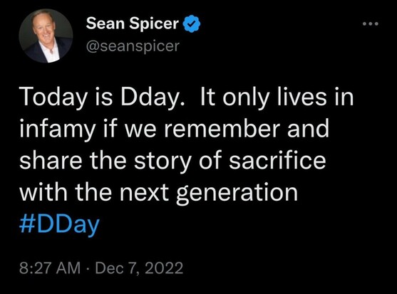 Today is actually Pearl Harbor Day, Sean. It only lives in infamy if we remember and share the story of the Allied invasion of Normandy.