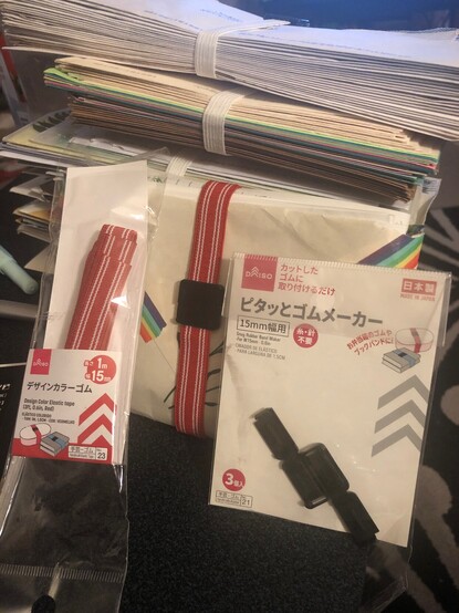 I secure letters from my pen pals using this 15mm wide elastic and plastic clips from Daiso. I generally don’t make one until I’ve received two letters from someone, and the elastic has enough stretch that I’ve never had to make a longer band yet, even for pen pals dating back to 2018. #penpals
