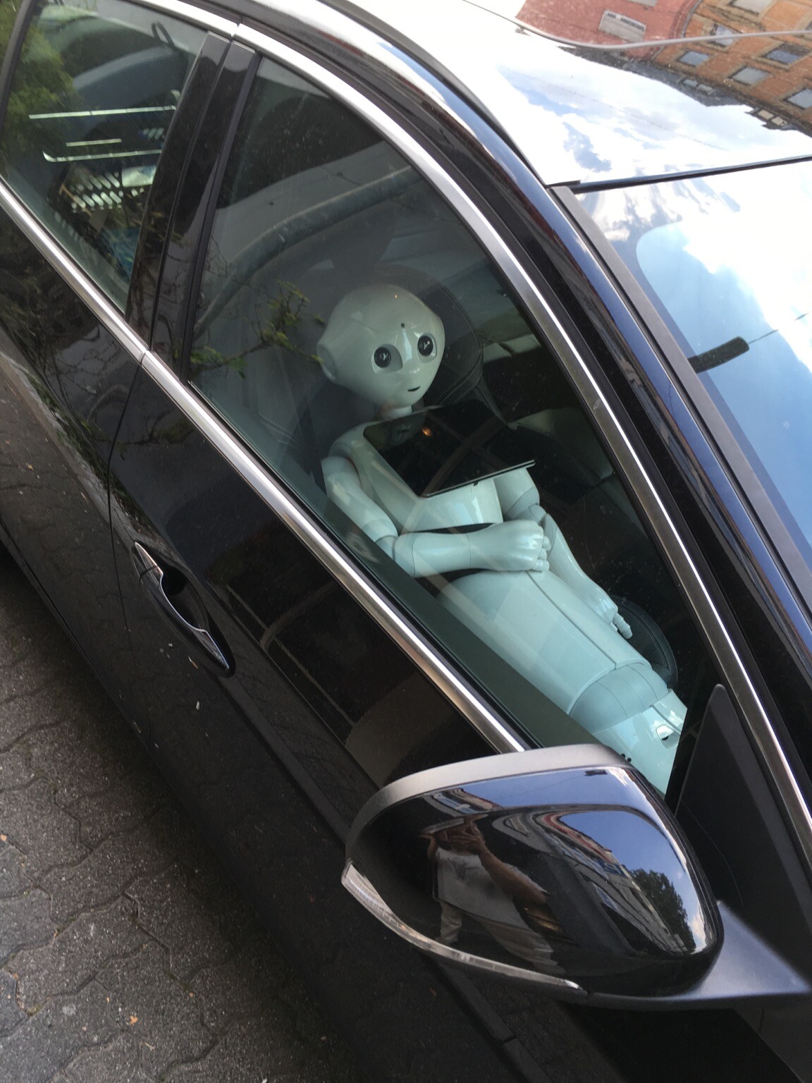 Mein Beifahrer hat es sich schon bequem gemacht. Wir haben noch viel vor. #peppertherobot #pepper #robot