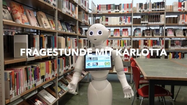 Karlotta hat sich sehr gut eingelebt in der Stadtbibliothek Karlsruhe. https://youtu.be/z0ZDtplFJok #karlotta #stadtbibliothek #karlsruhe #pepper #peppertherobot #CleverGuidesConcierge #roboter #robot #ki