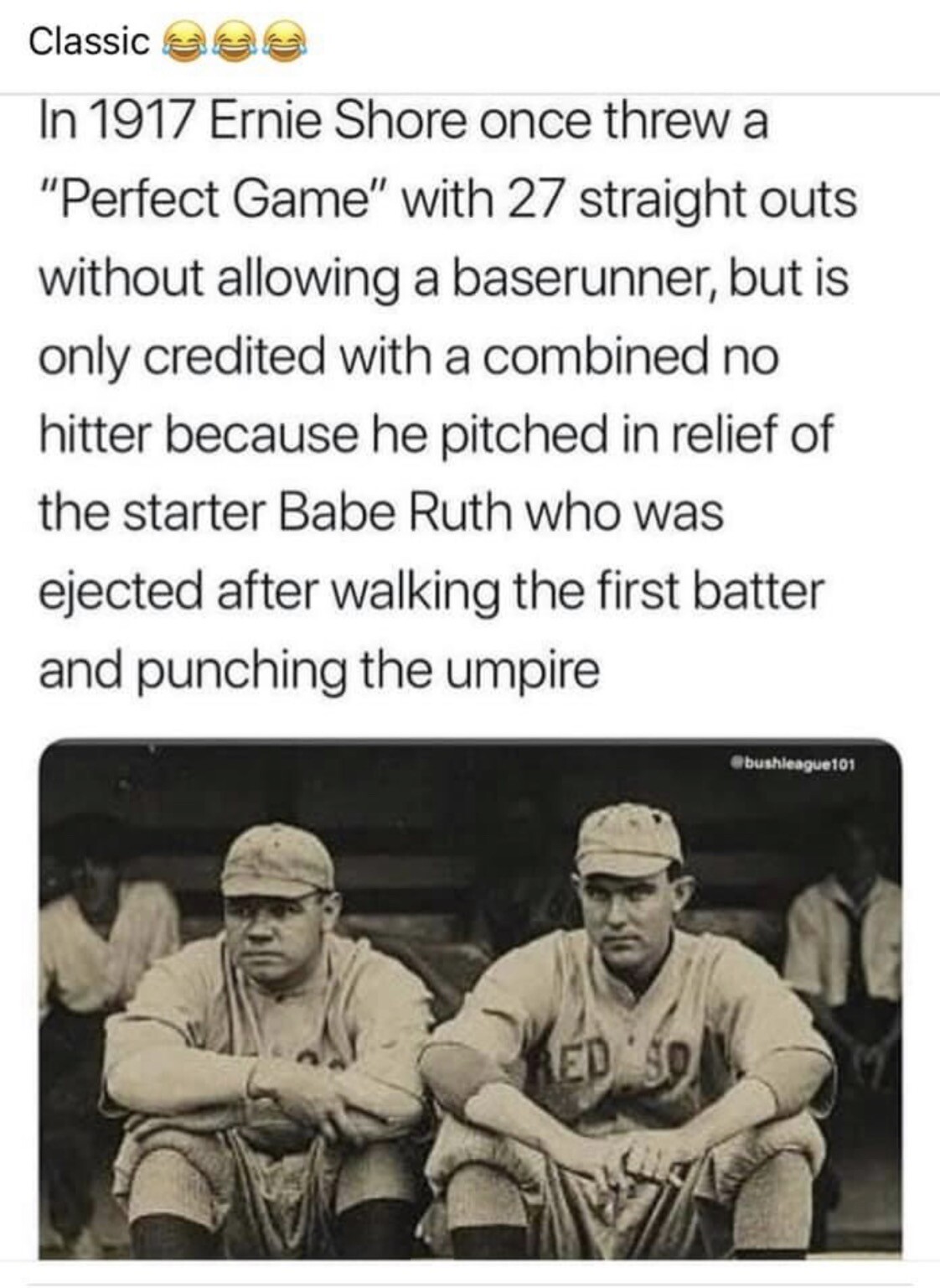 #flashbackfriday #mlb #baberuth #ernieshore #oldschool #perfectgame #combinednohitter