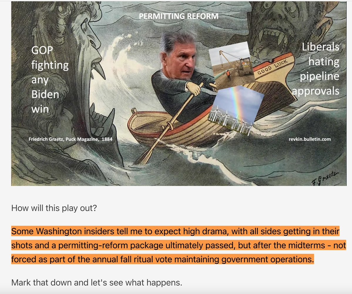 The news from that Democratic leadership is pondering attaching Manchin #permittingreform to the defense bill https://twitter.com/search?q=permitting%20reform%20defense&src=typed_query recalls a post-midterms prediction some made to me in August: https://bit.ly/climatefriction