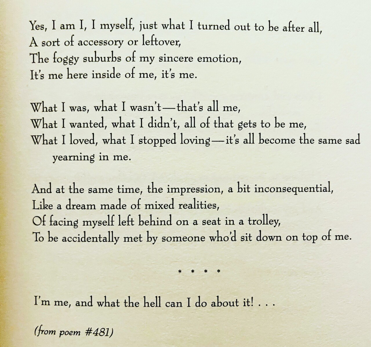 Extract: 'For Fernando Pessoa, as for the roughly 600 texts that make up his Book of Disquiet, and the estimated 136 homonyms that Pessoa inhabits in his own writing, there "is life, and there is writing, and they must remain immiscible." ...