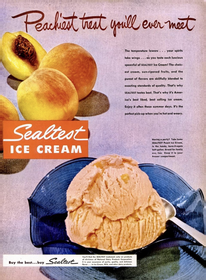 #icecream #Advertisement #Peach #PeachFlavored #Peters #Ephemera #Vintage #Retro #dessert #food