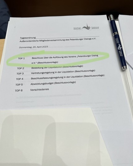 Der von #Schröder und Russlands #Putin initiierte #PetersburgerDialog wird 2023 beendet.