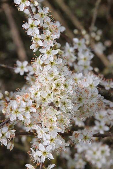 Die weißen Blüten der „Schlehe“ (Prunus spinosa) gehören in den Hecken im Frühling zu den ersten Farbtupfern.