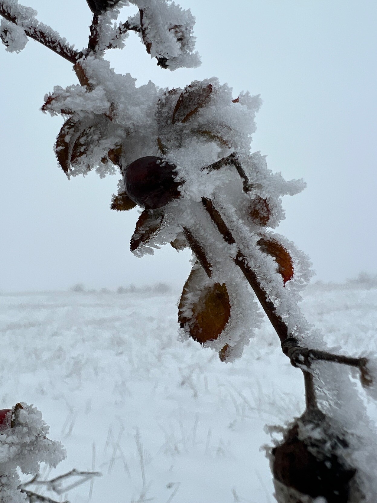 Vor vier Wochen versank Jena in Schnee und Eis. (Rosa sp. - Hagebutte)