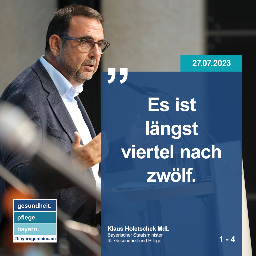 Statement von Bayerns Gesundheitsminister Klaus Holetschek zu den alarmierenden Zahlen bei den Pflege-Auszubildenden und fordert entsprechend einen Pflegegipfel.