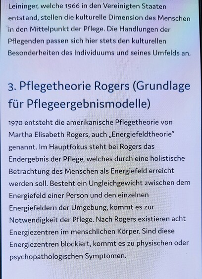 Jetzt soll sie Pflegetheorien lernen.