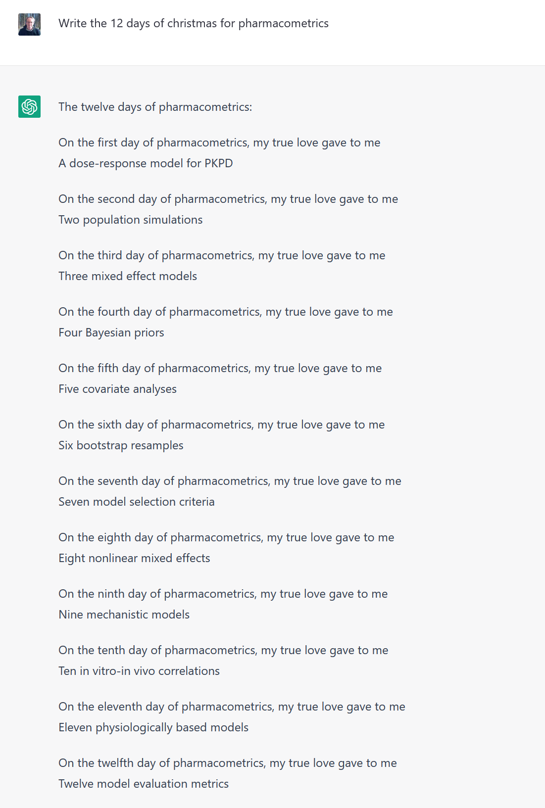 #ChatGPT applications in #Pharmacometrics from Peter Bloomingdale. Are pharmacometrician jobs in danger from #AI?