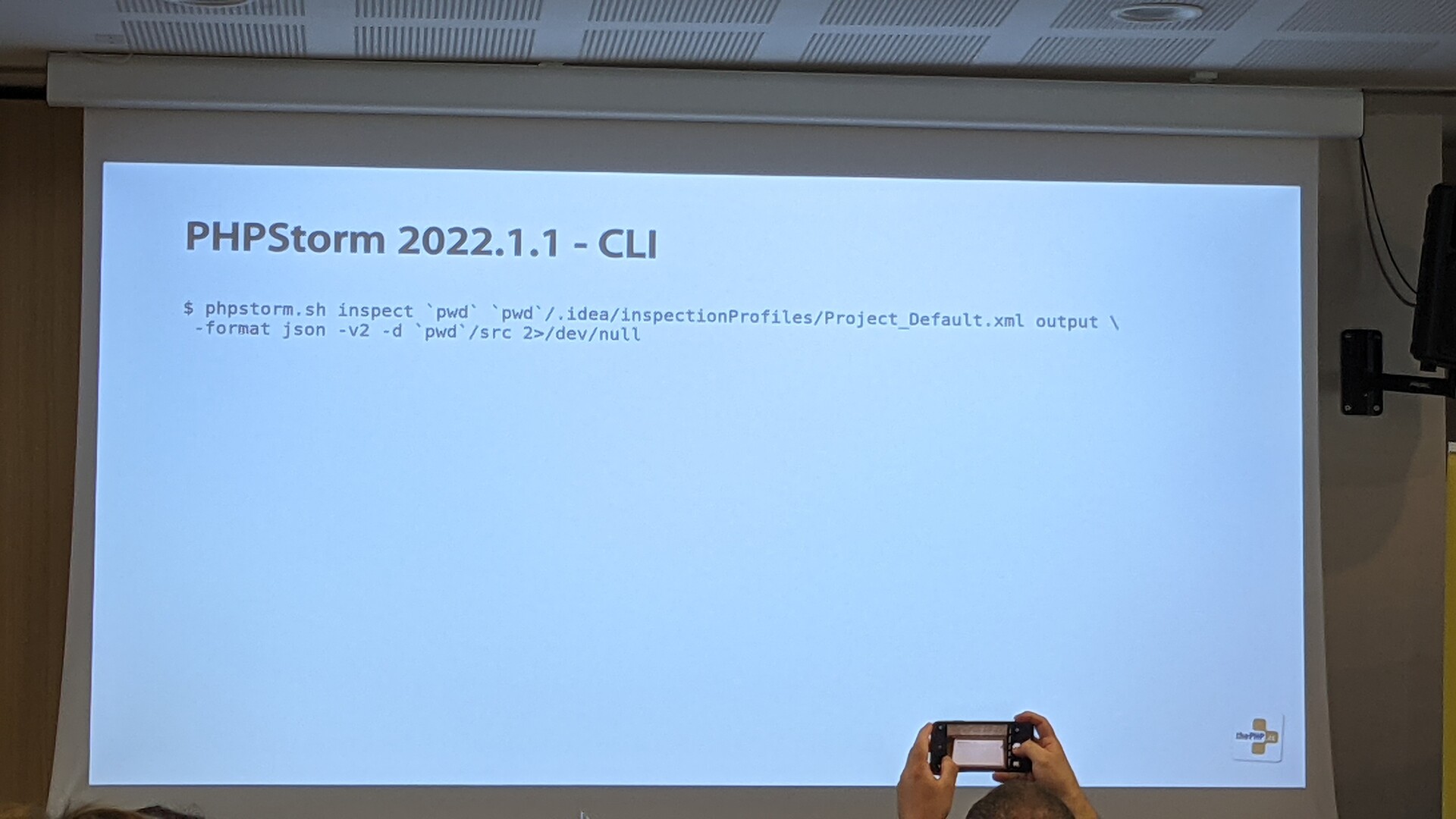 Nice way to use PHPStorm's inspection in command line shown by @arneblankerts at #phpday #phpday2023.