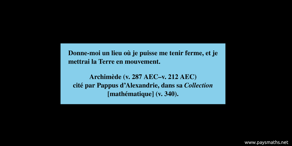 "Donne-moi un lieu où je puisse me tenir ferme, et je mettrai la Terre en mouvement." – Archimède (v. 287 AEC–v. 212 AEC)