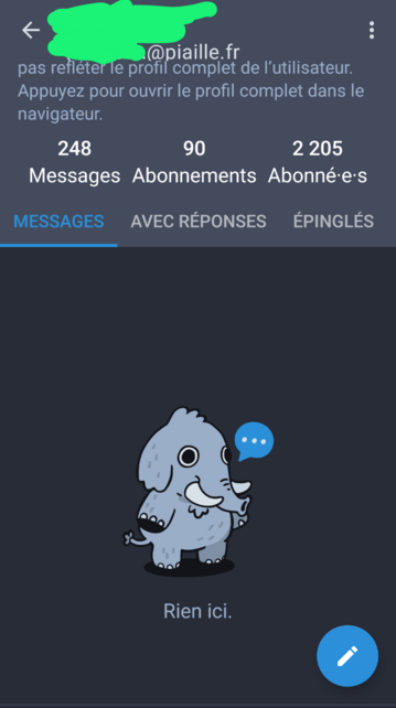 Comme c est compliquĂ© d'avoir deux profils sur la mĂȘme instance, vous pouvez egalement vous abonner Ă mon compte perso #piaille :