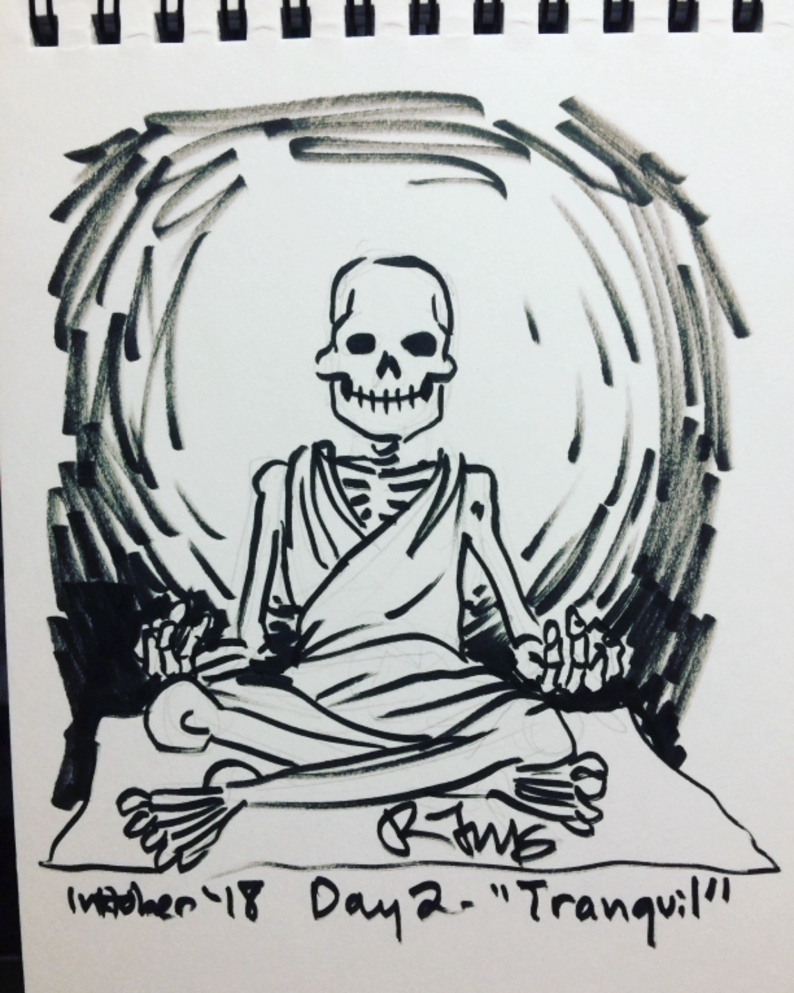 #inktober #inktober2018 #pigmabrush #skeleton #meditation #om