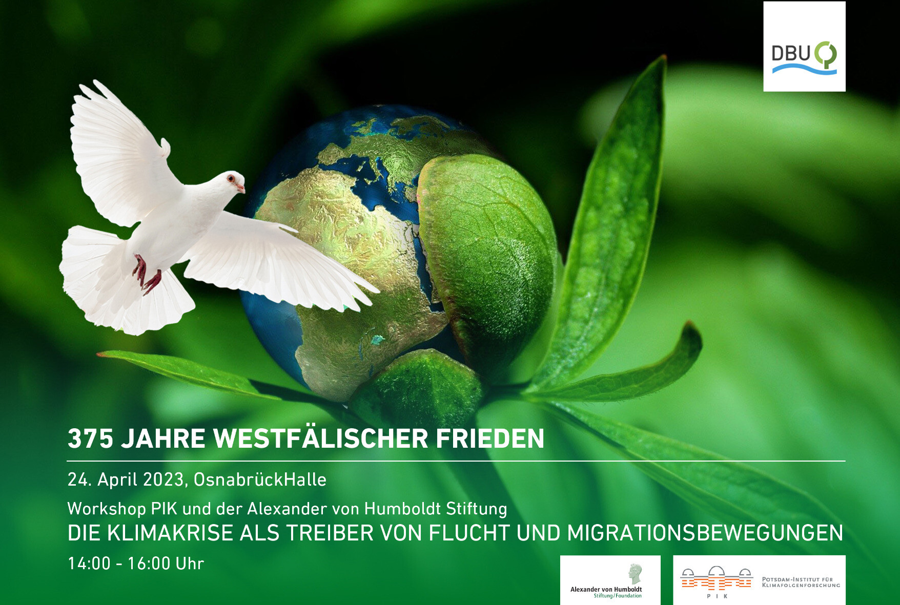 Spannende DBU-Veranstaltung am 24.4. zu 375 Jahre Westfälischer Frieden - #Klimaschutz als Friedensgrundlage - mit #PIKs Jacob Schewe im Workshop zum Thema "Die #Klimakrise als Treiber von Flucht und Migrationsbewegungen"