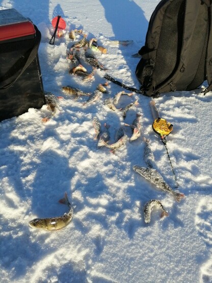 En ole kovin kaksinen kalamies, mutta rannetallettimen mukaan pilkkireissu autolta autolle kesti 1h37min ja sain yli 50 ahventa. Tässä taukokuvassa on jo 35 ahventa. Yhdessä kalakaverin kanssa saimme ahvenia ämpärillisen #Valkeakoski #ahven #pilkkiminen