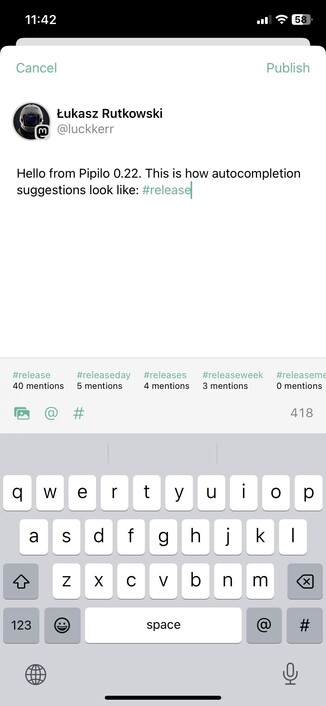 0.22 of #Pipilo for Mastodon and Fediverse on #iOS is out with autocompletion suggestions and hashtag timelines.