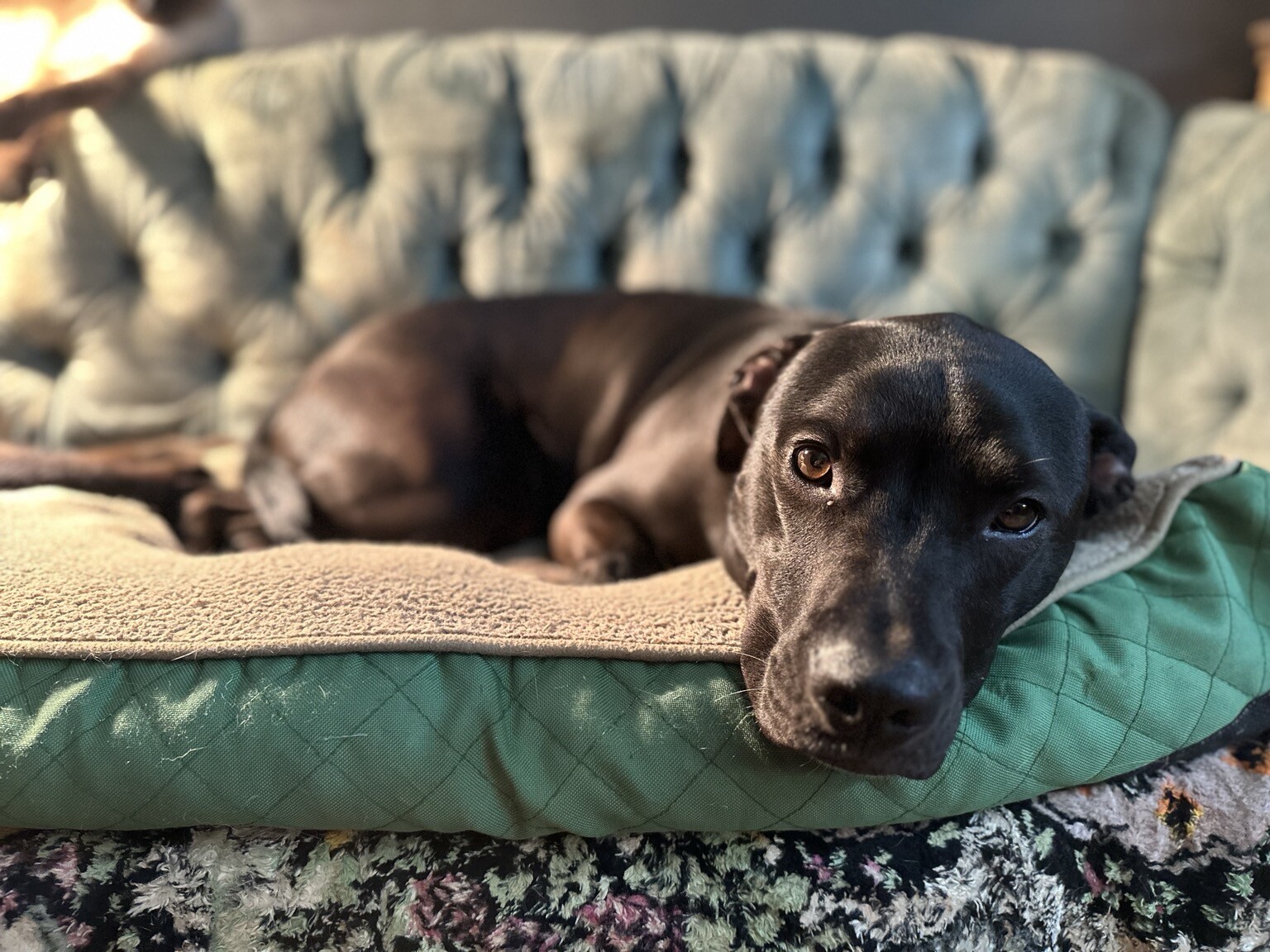 Now I'm in the puppy version of nap jail with my 40lb lap dog. 🥰 [happy emoji with hearts]