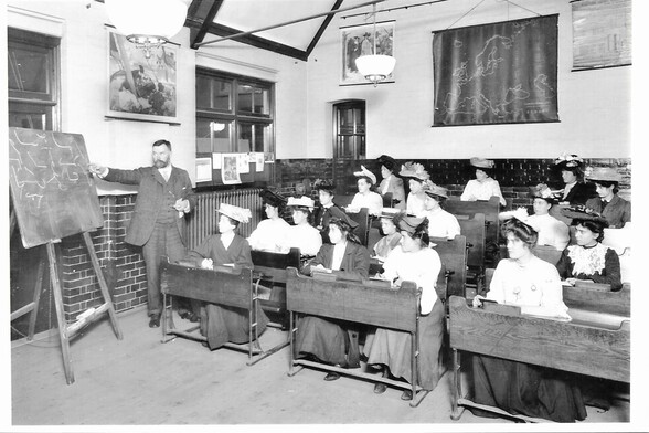 A shorthand class at Choumert Road Evening Institute. In Sept 1916, the Forest Hill and Sydenham Examiner reported: 'During the war women have entered largely into the Commercial and Manufacturing world. Without their services the war might have been lost'. #PitmanShorthand